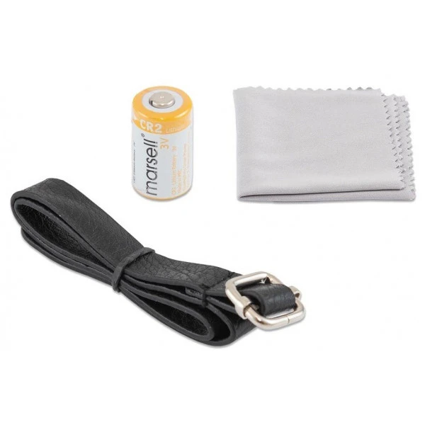 - Fourni avec dragonne, housse de transport et pile CR2