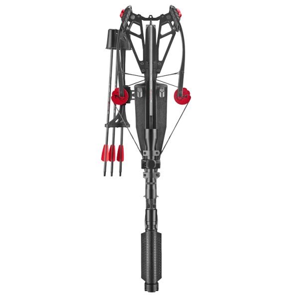 | Accessoires | 3 traits carbone, lunette de visée, carquois, crosse réglable, bipied, lunettes de sécurité, lubrifiant à rail, sangle |